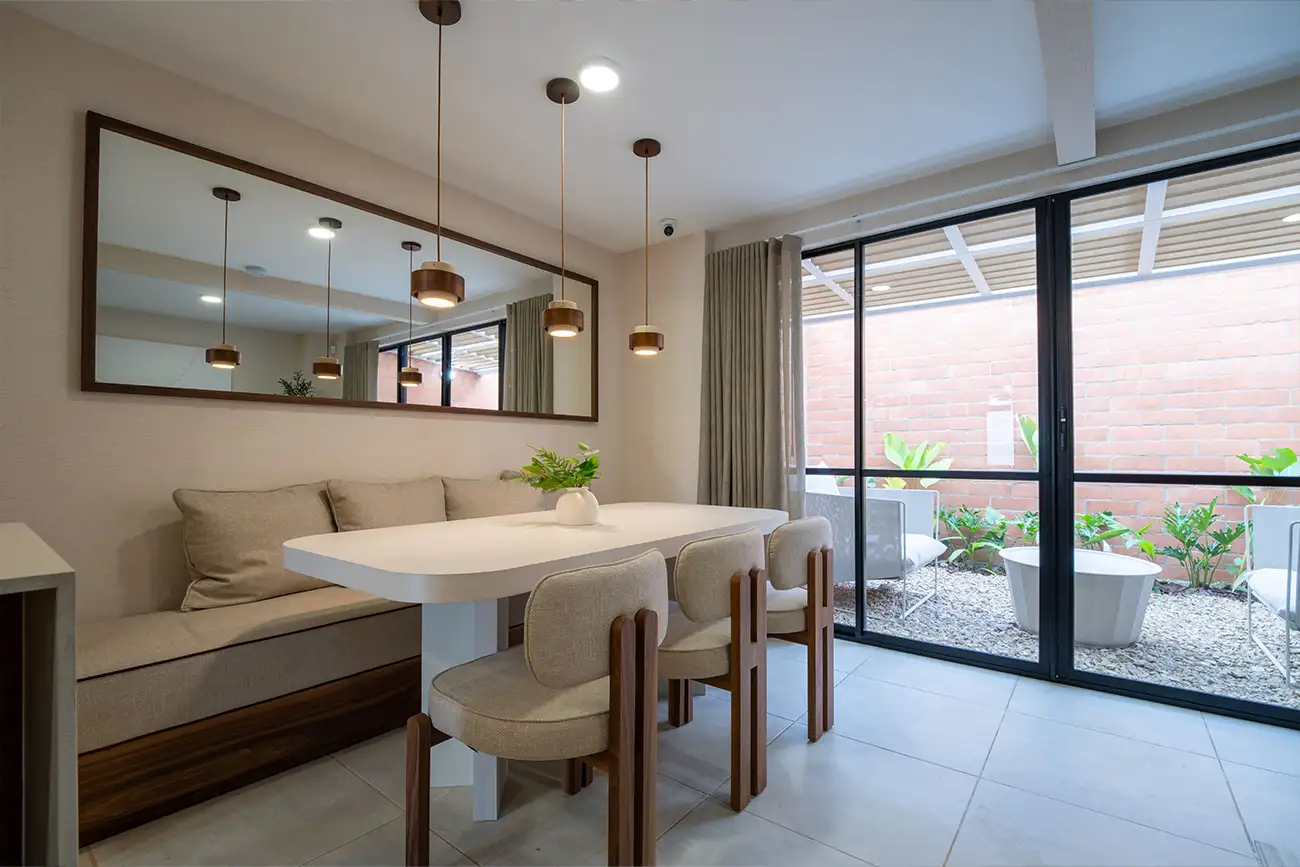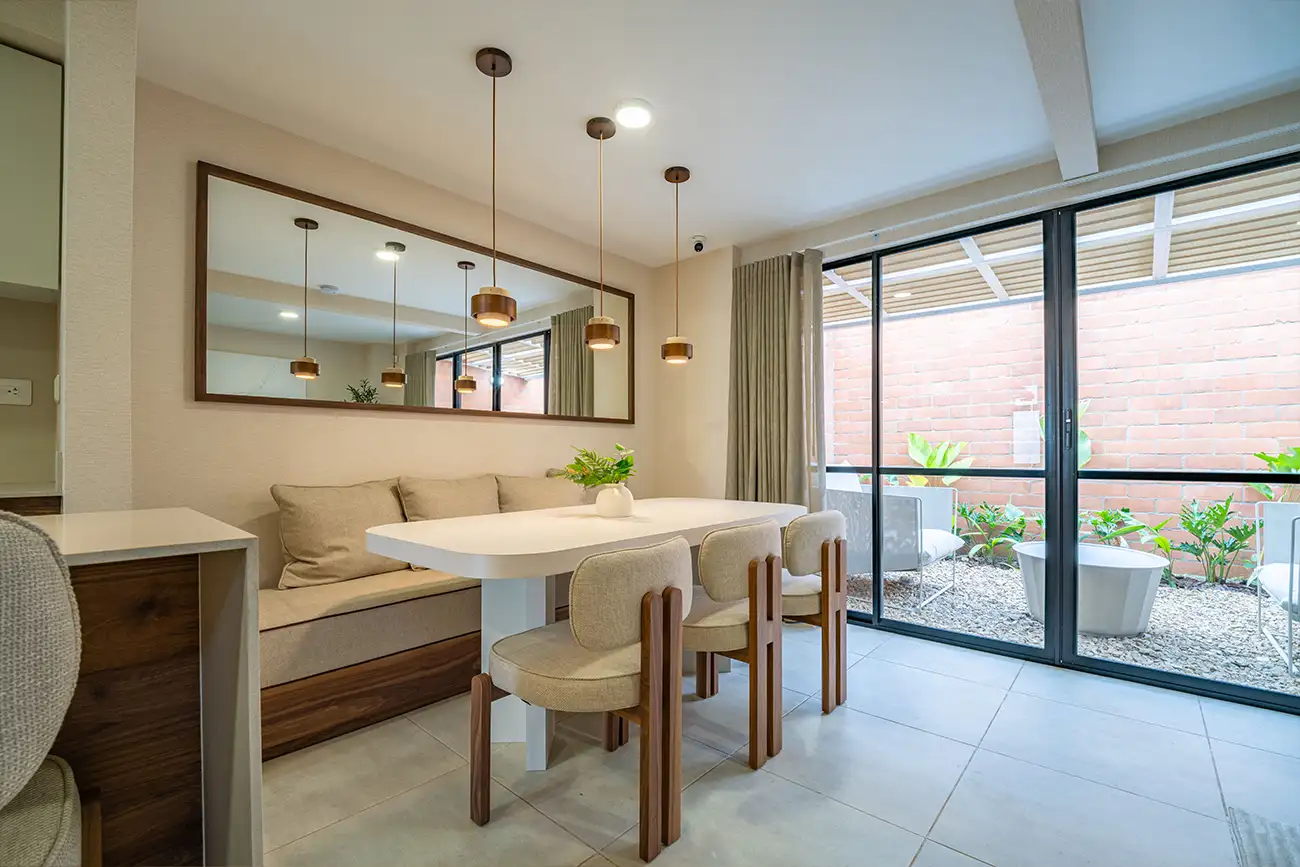 El diseño propuesto y los acabados presentes en este modelo pueden estar sujetos a modificaciones y cambios durante el proceso y desarrollo arquitectónico y de construcción. La ubicación y vista de los inmuebles que conforman el proyecto, dependerán del diseño aprobado, que podrá diferir de lo plasmado en este sitio web.